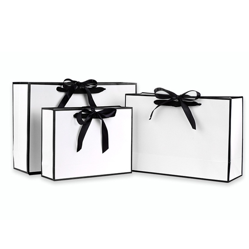 Shopping Bag Paper Bags Large Size Handles Gift Bags With Ribbon White Color With Black Side For Store Birthday Gift Shopee Singapore